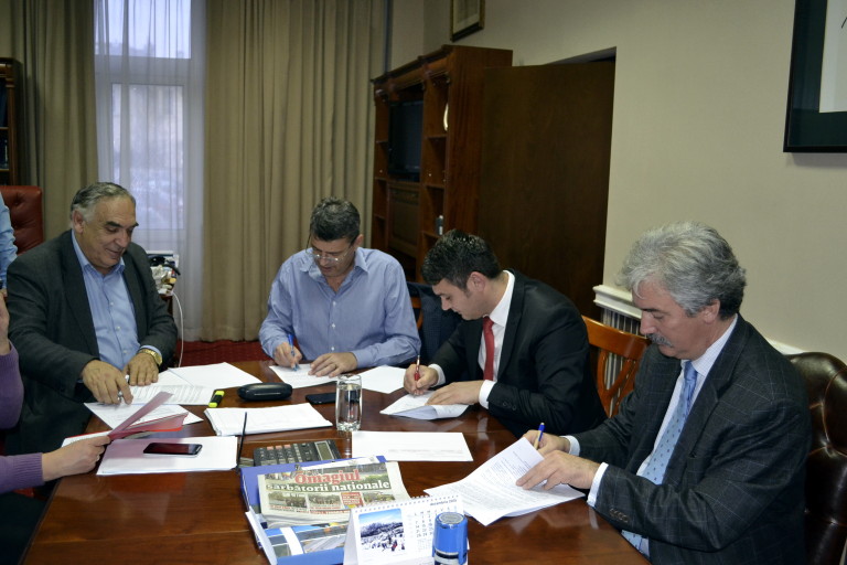 Președintele Consiliului Județean Ilfov, domnul Marian Petrache, directorul general la Institutului Naţional de Cercetare – Dezvoltare pentru Fizică şi Inginerie Nucleară „Horia Hulubei”, domnul prof. dr. Nicolae Zamfir, directorul executiv al Măgurele High Tech Cluster, domnul Dragoș Șeuleanu și domnul