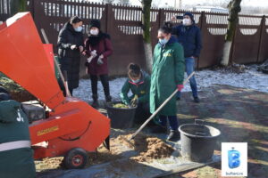 Astfel, cu sprijinul Primăriei Buftea – prin echipa General Public Serv, o parte din brazii rămași după sărbătorile de iarnă au fost mărunțiți cu ajutorul unui utilaj special de tocare. În cadrul acțiunii, copiilor participanți li s-a arătat practic cum se pot valorifica brazii rămași de la Crăciun, dar și crengile și frunzele uscate căzute din copaci. Demonstrația „verde” a avut loc în curtea Palatului Copiilor și Elevilor Ilfov – locul unde se amenajează una dintre cele două grădini. Materialul rezultat a fost colectat și urmează să se transforme în compost în țarcurile amenajate aici. După descompunerea acestora, compostul rezultat va fi folosit ca îngrășământ pentru florile, arbuștii și plantele decorative din cele două grădinile urbane.