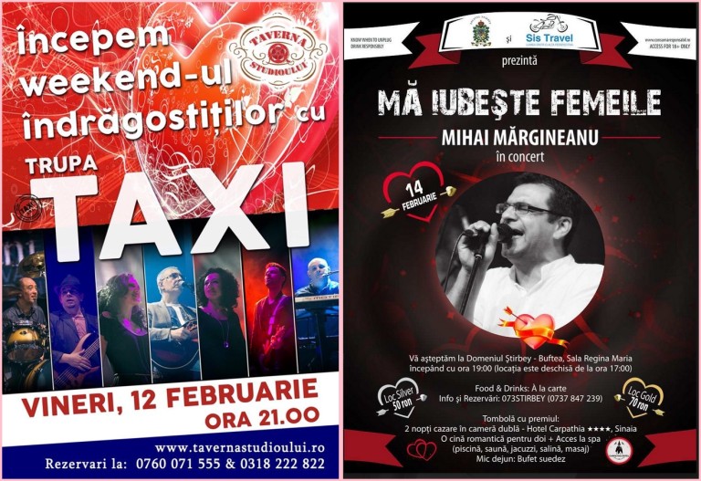 Așadar, pe data de 14 Februarie, îndrăgostiții își pot declara iubirea în două localuri buftene: Palatul Știrbey și Taverna Studioului.